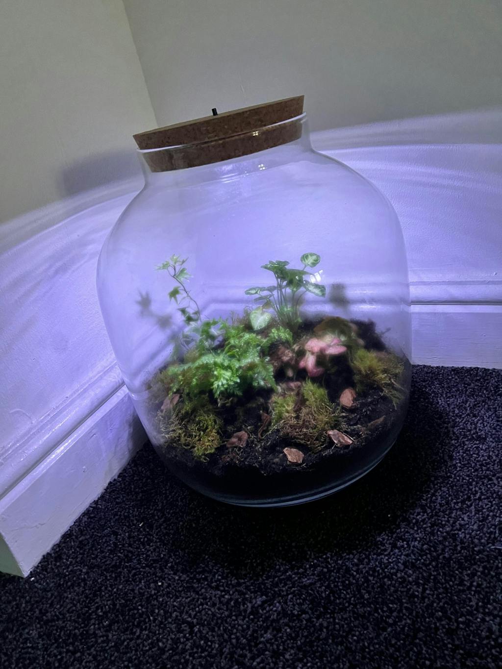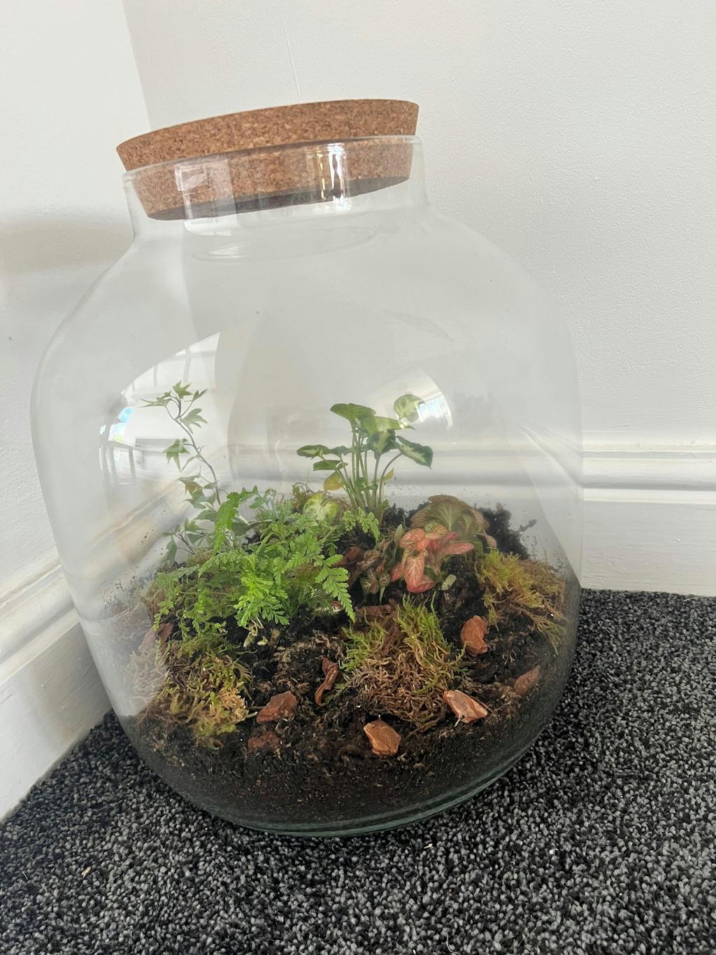 - Plants and Moss: Moss and 5 plants chosen by us suitable for a closed terrarium (plants can be bare root)